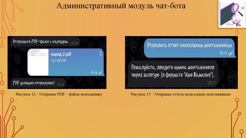 Административный модуль чат-ботаРисунок 12 – Отправка PDF – файла монтажнику