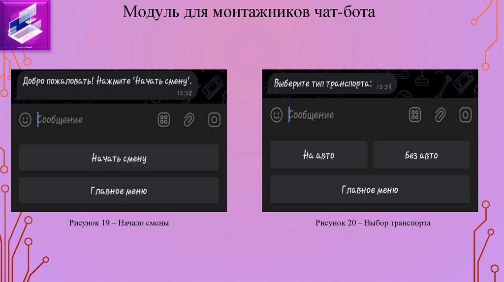 Модуль для монтажников чат-ботаРисунок 19 – Начало смены