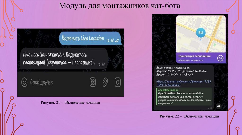 Модуль для монтажников чат-ботаРисунок 21 – Включение локации