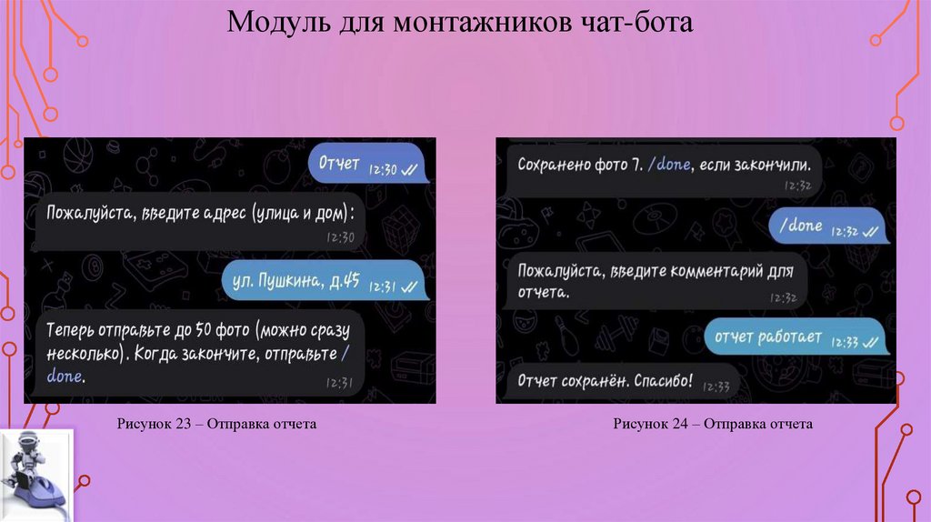 Модуль для монтажников чат-ботаРисунок 23 – Отправка отчета