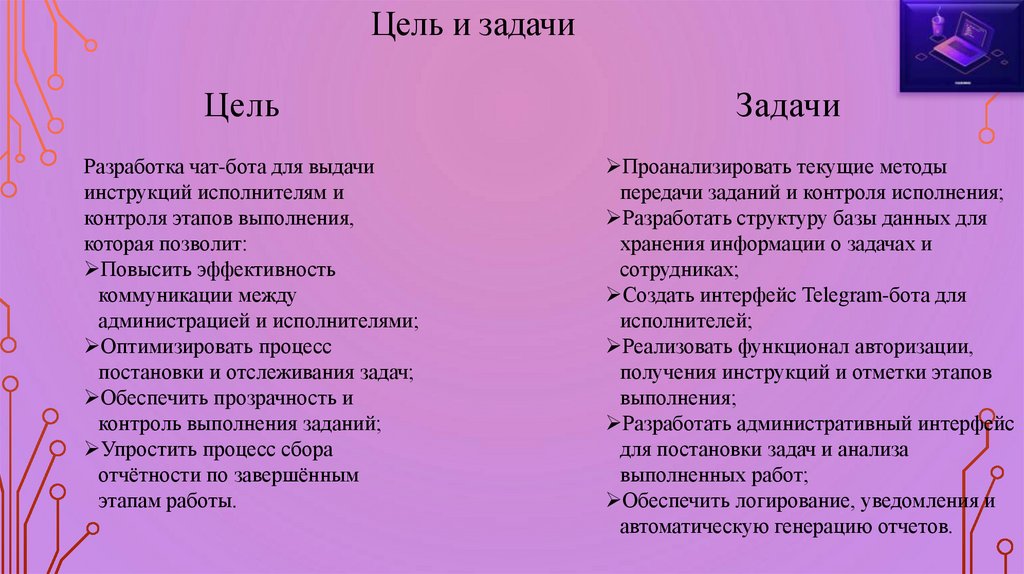 Разработка чат-бота для выдачи инструкций исполнителям и контроля этапов выполнения