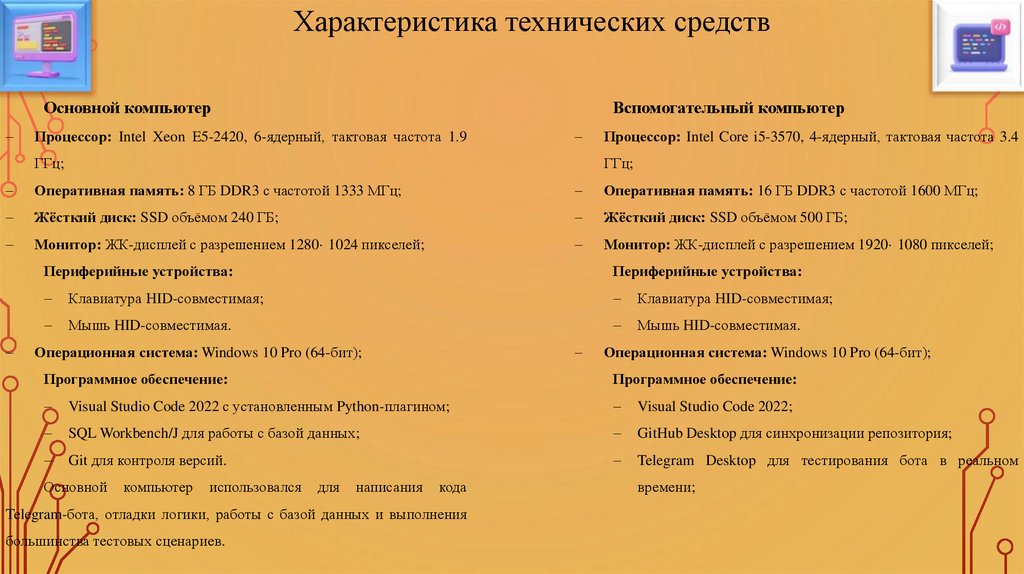 Telegram-бота, отладки логики, работы с базой данных и выполнения