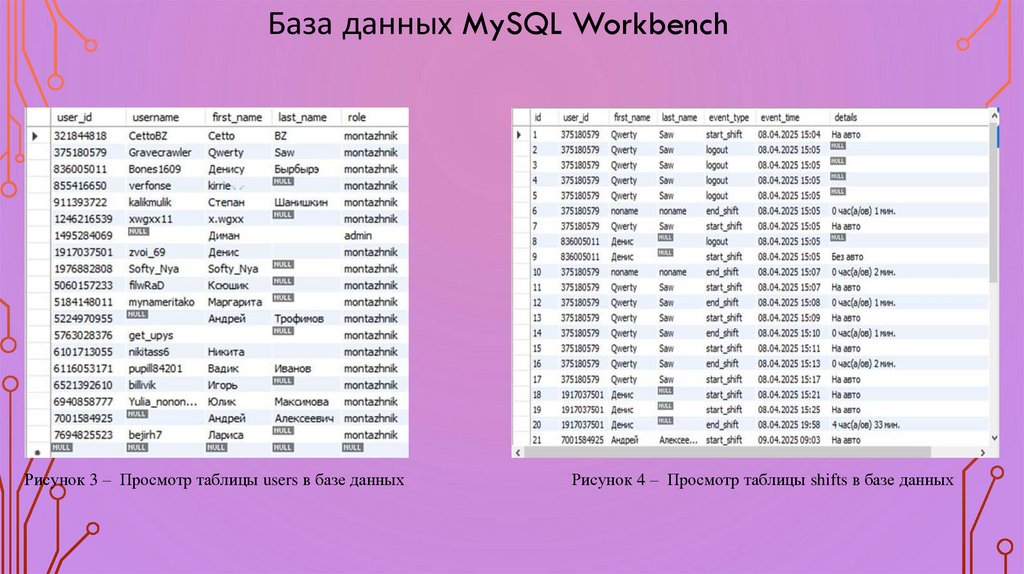 База данных MySQL WorkbenchРисунок 3 – Просмотр таблицы users в базе данных