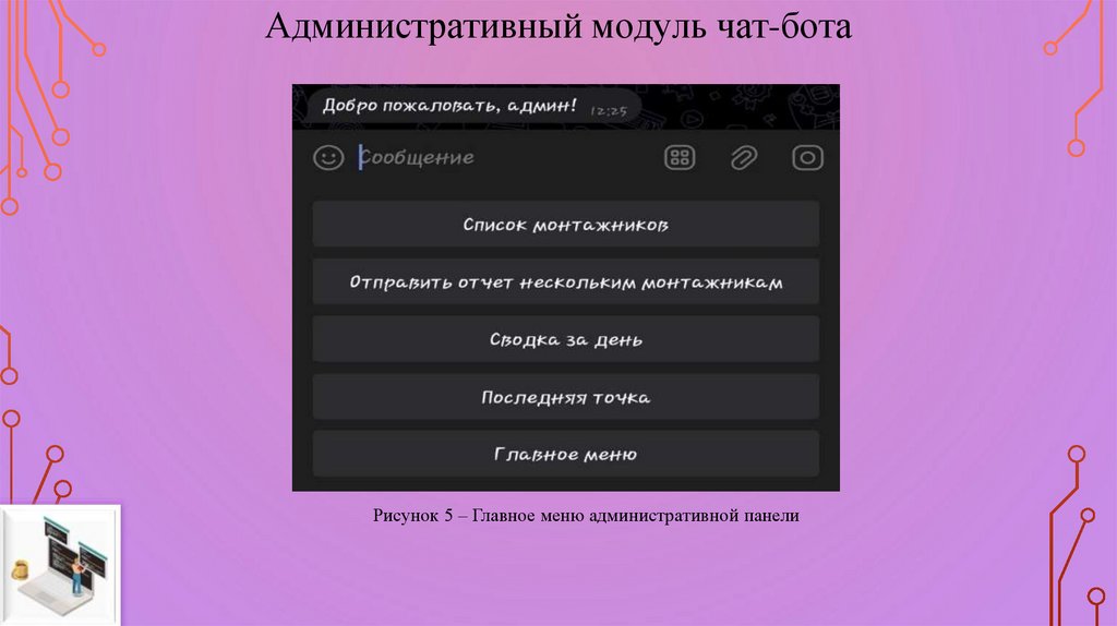 Административный модуль чат-ботаРисунок 5 – Главное меню административной панели