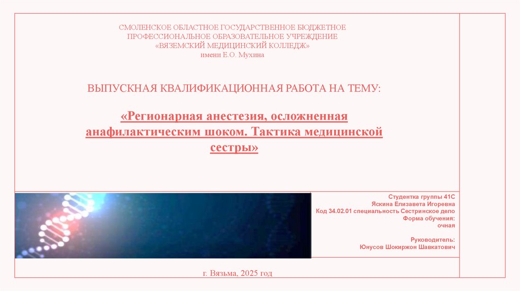 1. СМОЛЕНСКОЕ ОБЛАСТНОЕ ГОСУДАРСТВЕННОЕ БЮДЖЕТНОЕ ПРОФЕССИОНАЛЬНОЕ ОБРАЗОВАТЕЛЬНОЕ УЧРЕЖДЕНИЕ «ВЯЗЕМСКИЙ МЕДИЦИНСКИЙ КОЛЛЕДЖ»