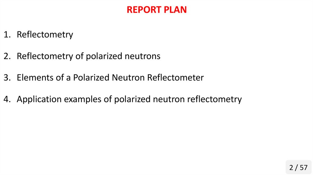 REPORT PLAN1. Reflectometry