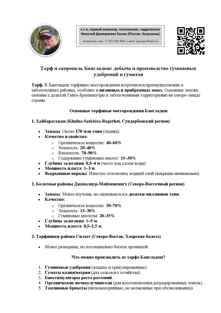 Торф и сапропель Бангладеш - добыча и производство гуминовых удобрений и гуматов