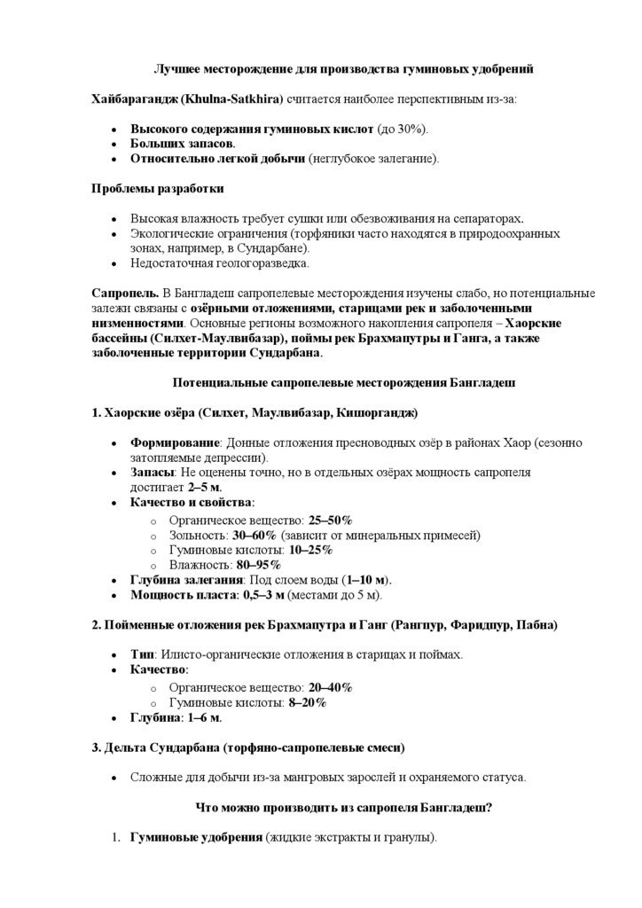 Лучшее месторождение для производства гуминовых удобренийХайбарагандж (Khulna-Satkhira) считается наиболее перспективным из-за: