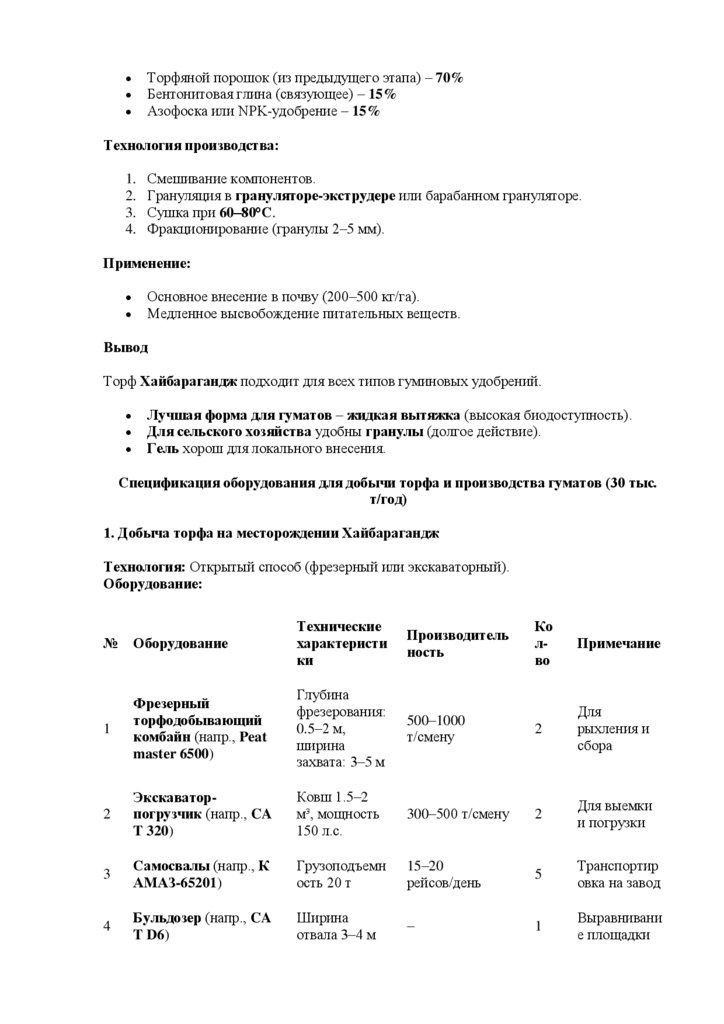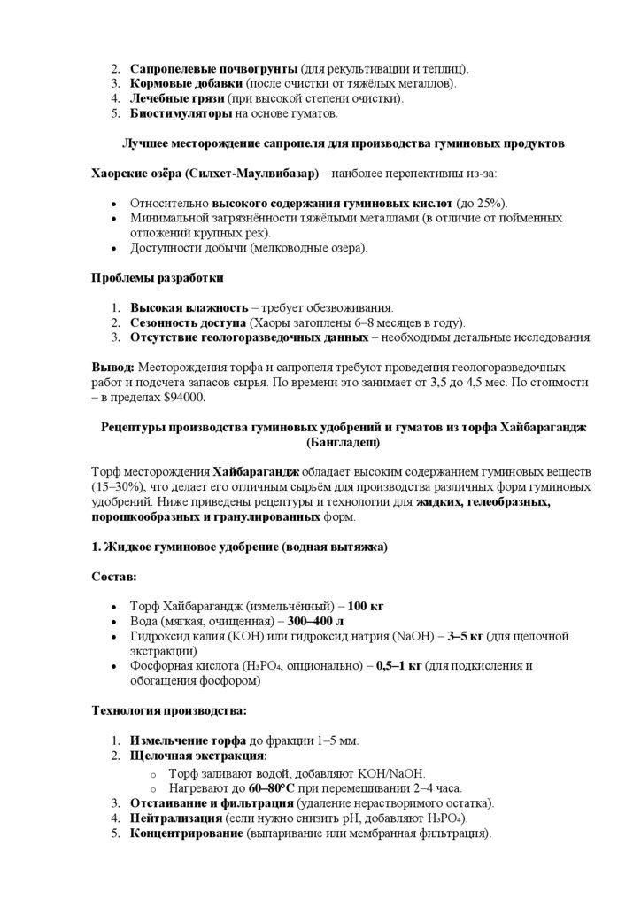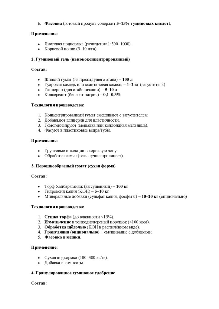 Рецептуры производства гуминовых удобрений и гуматов из торфа Хайбарагандж