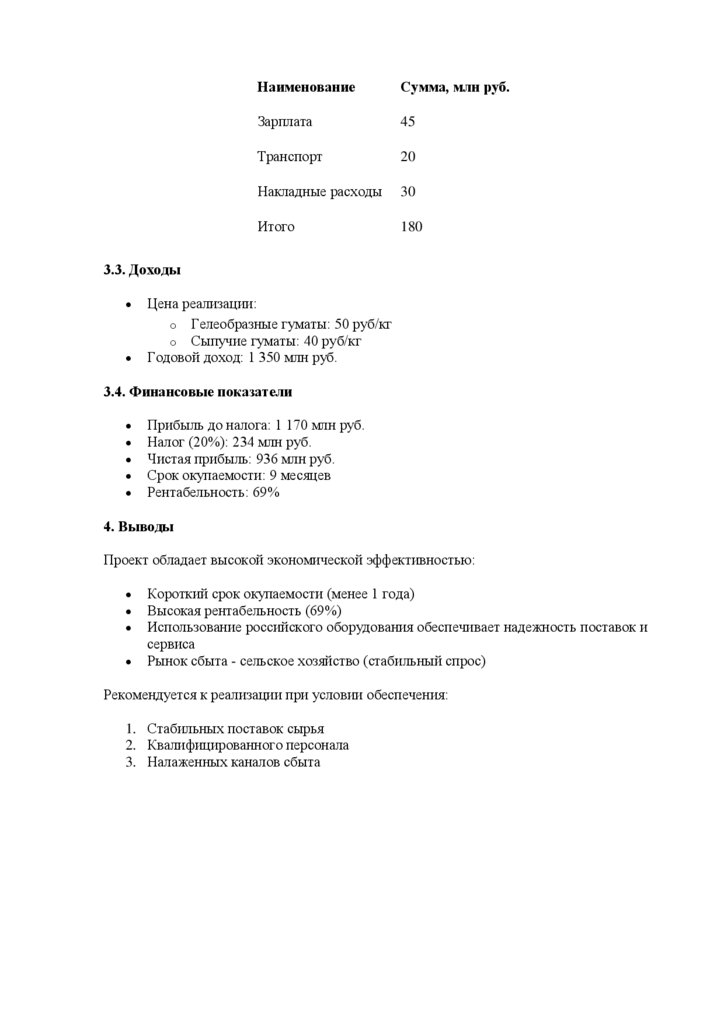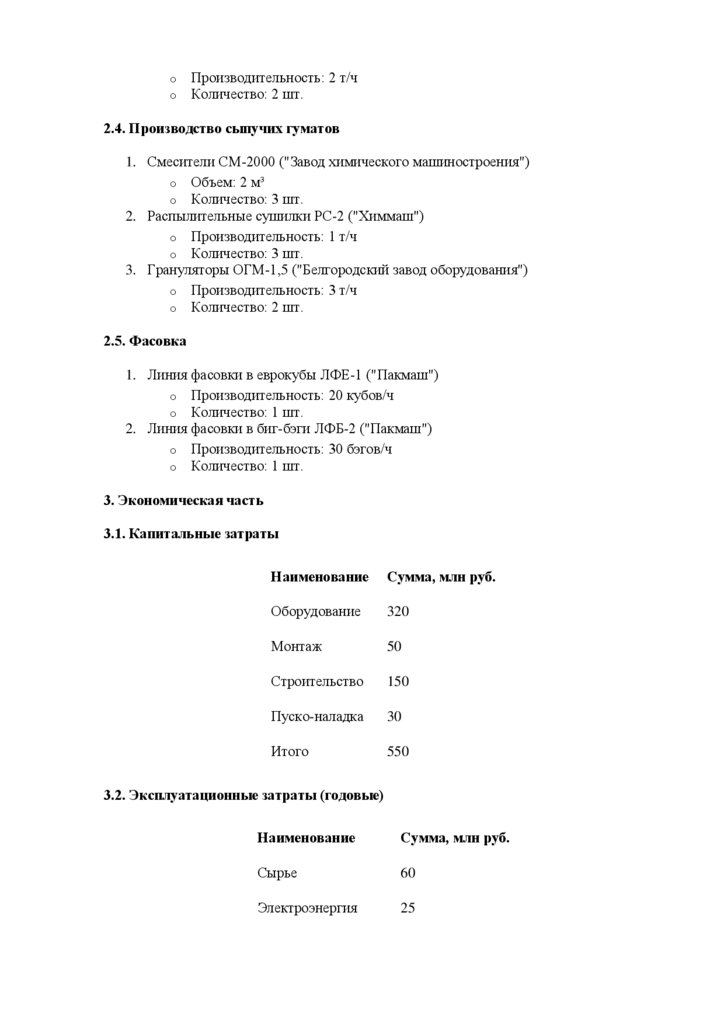 o Сыпучие гуматы - 15 000 т/год (фасовка в биг-бэги 1000 л)