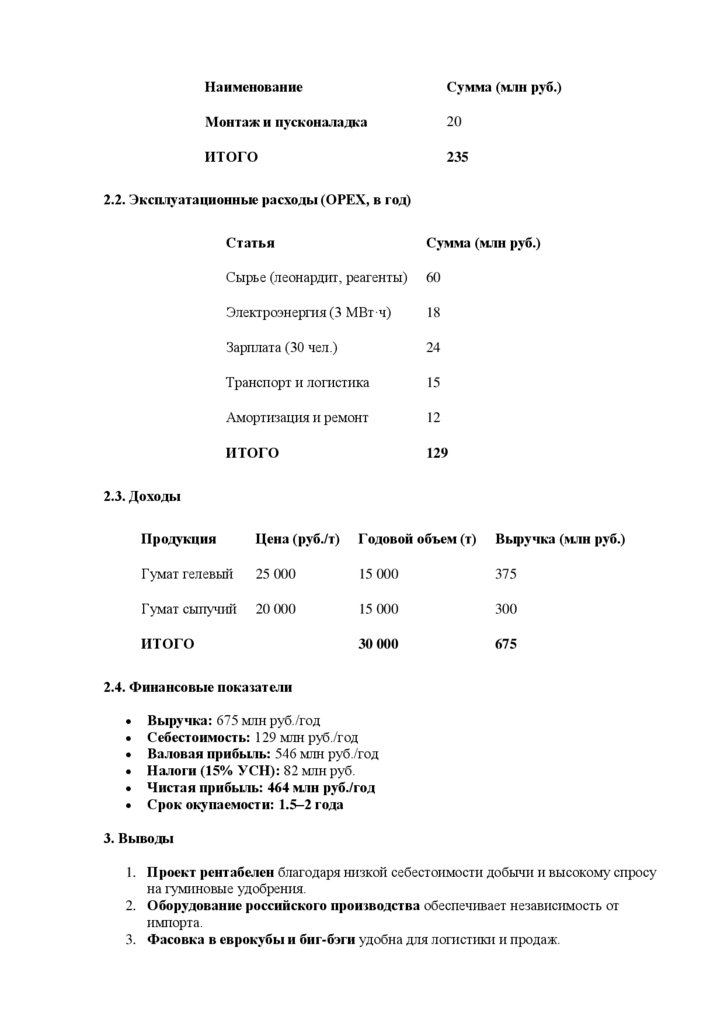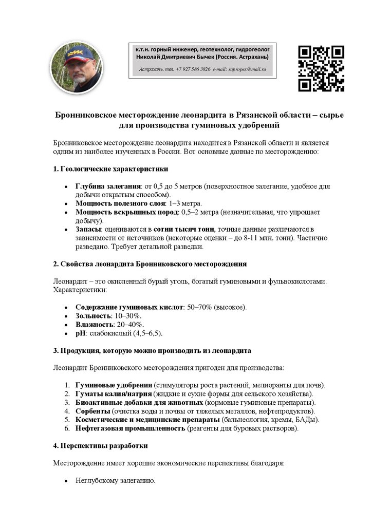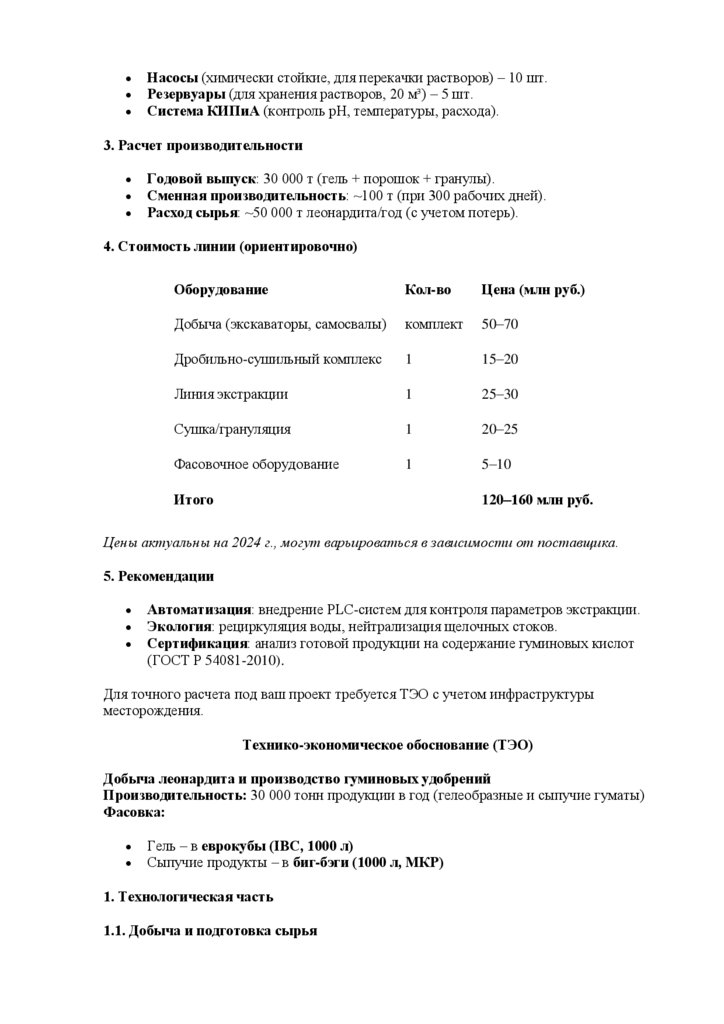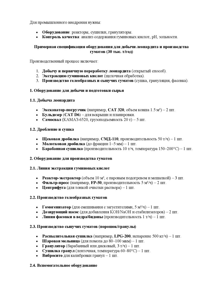 Для детализации – нужен Геологический отчет по запасам леонардита и ТЭО от