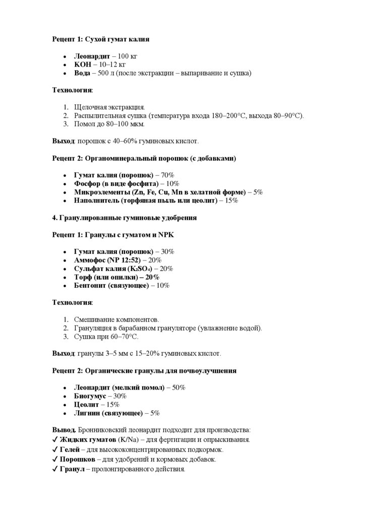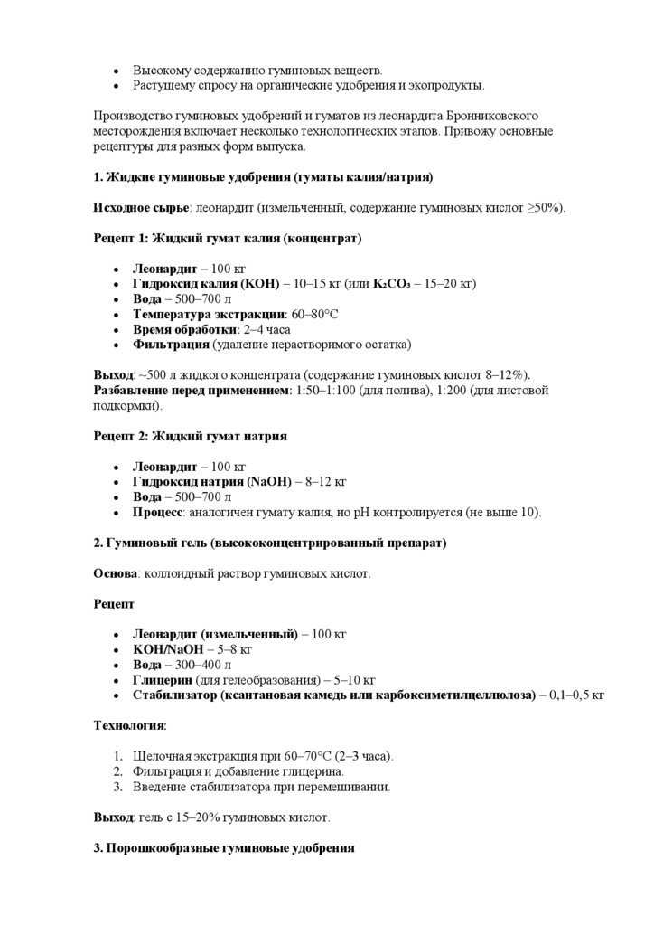 Производство гуминовых удобрений и гуматов из леонардита Бронниковского