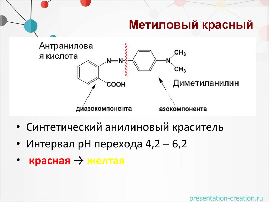 • рН 3.0 – 5.2 сине-фиолетовый (λмах = 585 нм)