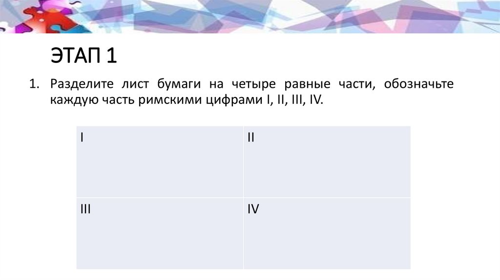 ЭТАП 11. Разделите лист бумаги на четыре равные части, обозначьте