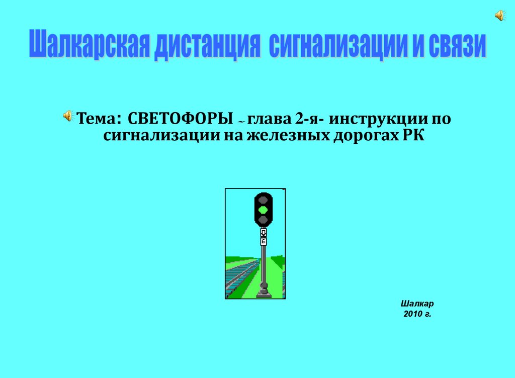 Тема: СВЕТОФОРЫ – глава 2-я- инструкции посигнализации на железных дорогах РК