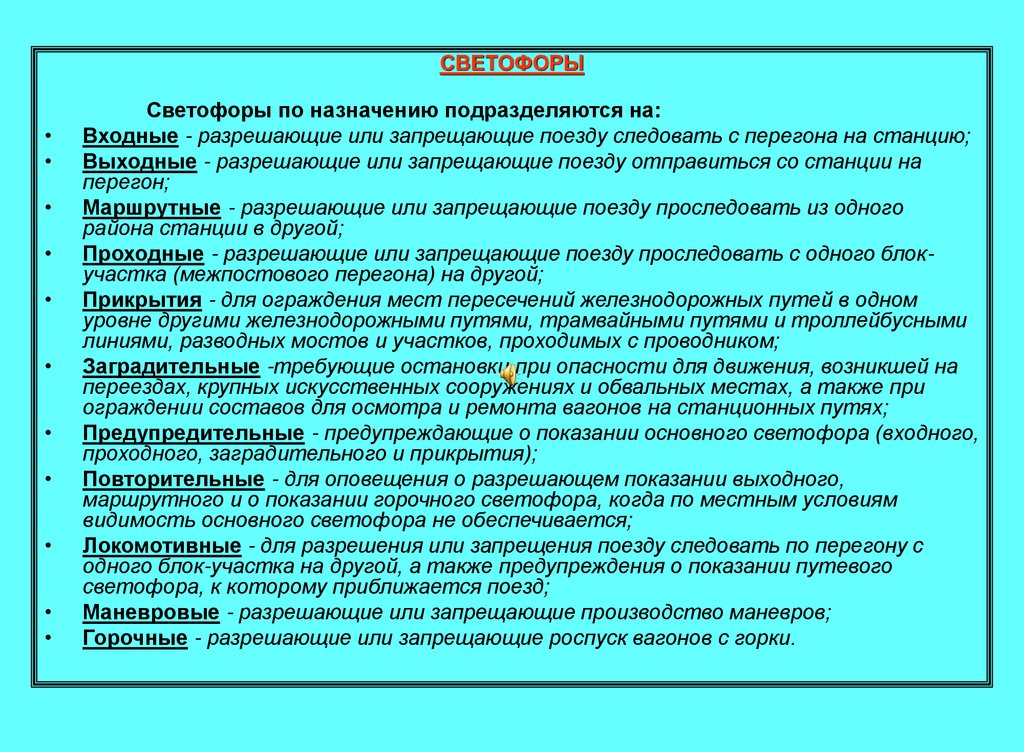 Светофоры – глава 2-я- инструкции по сигнализации на железных дорогах РК