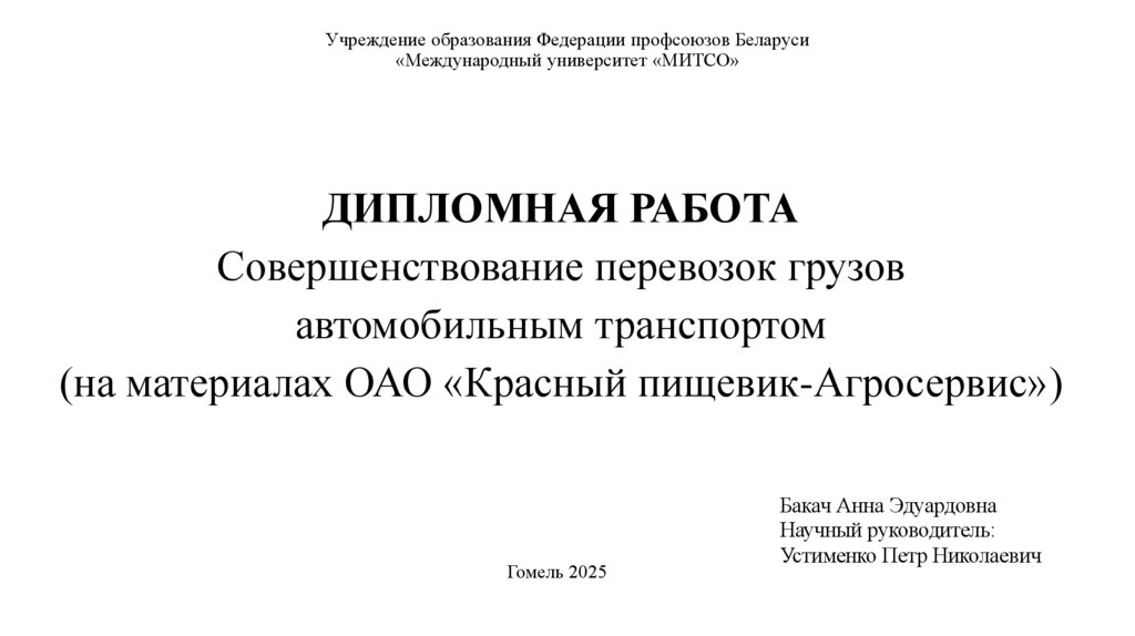 ДИПЛОМНАЯ РАБОТАСовершенствование перевозок грузов