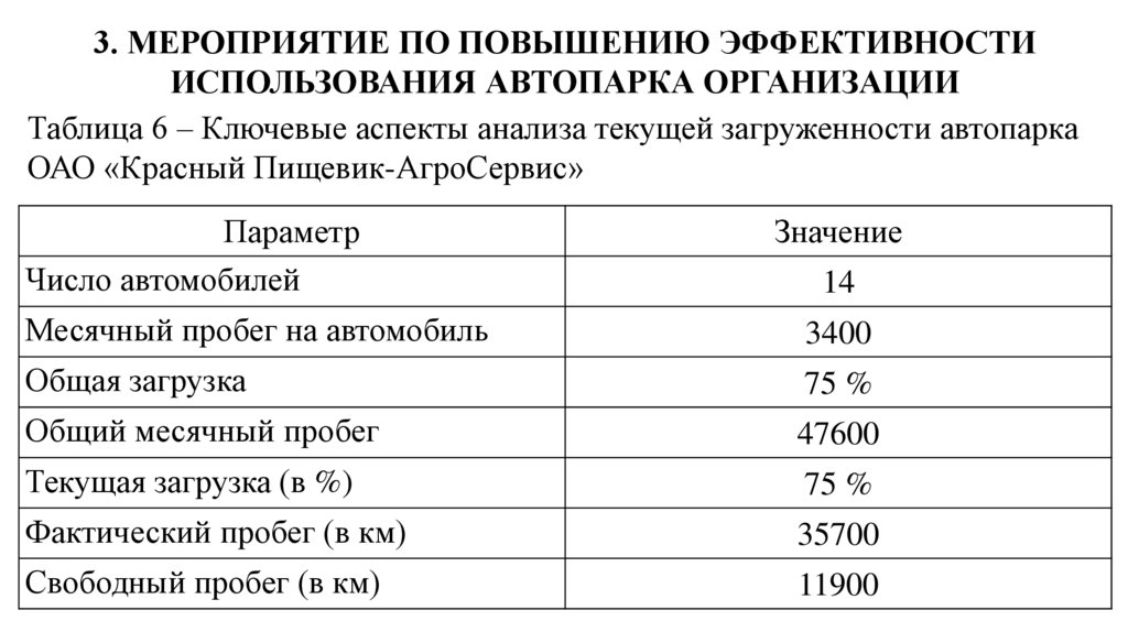 3. МЕРОПРИЯТИЕ ПО ПОВЫШЕНИЮ ЭФФЕКТИВНОСТИИСПОЛЬЗОВАНИЯ АВТОПАРКА ОРГАНИЗАЦИИ
