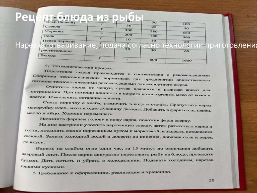 Рецепт блюда из рыбыНарезка, отваривание, подача согласно технологии приготовления