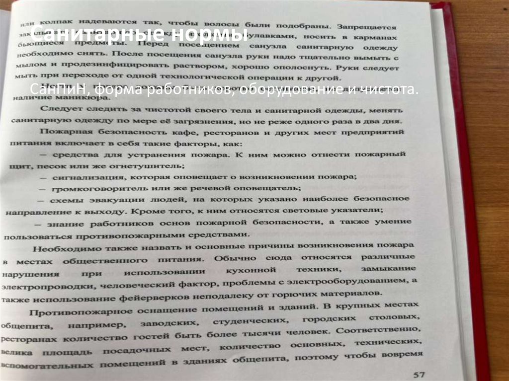 Санитарные нормыСанПиН, форма работников, оборудование и чистота.
