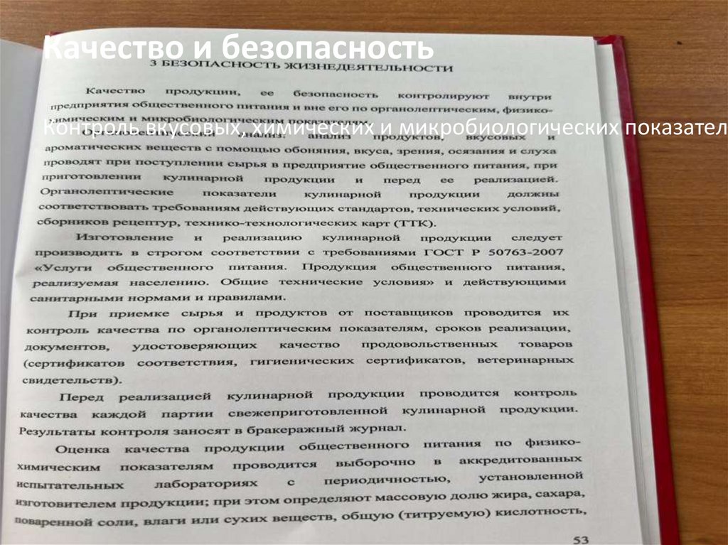 Качество и безопасностьКонтроль вкусовых, химических и микробиологических показателе
