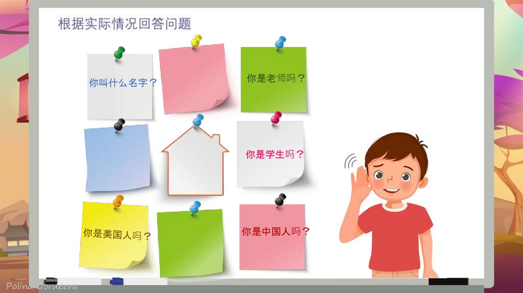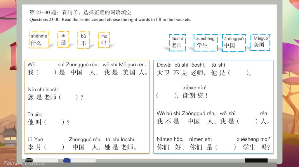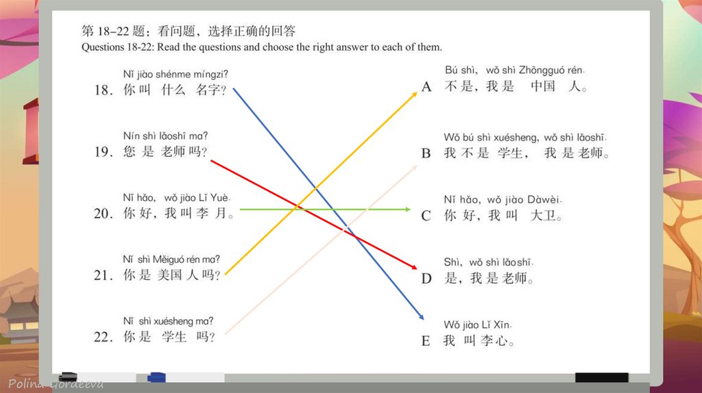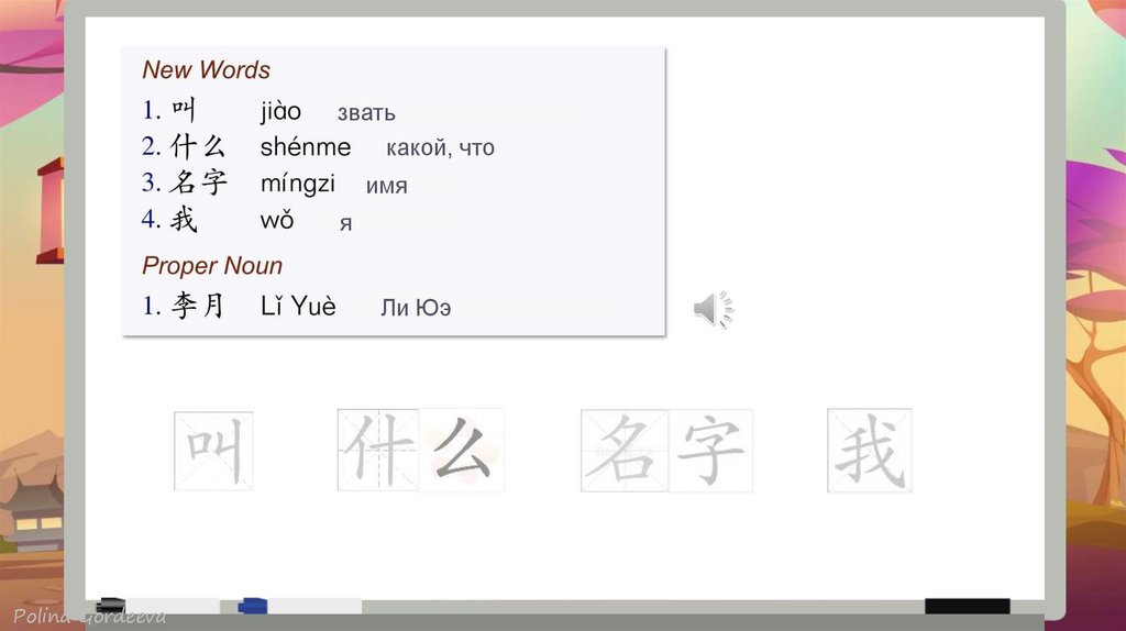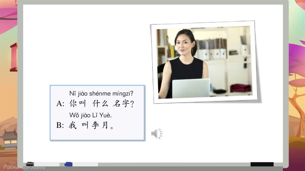 NT jido shenme mingzi 你叫 什么名 字 What's your name