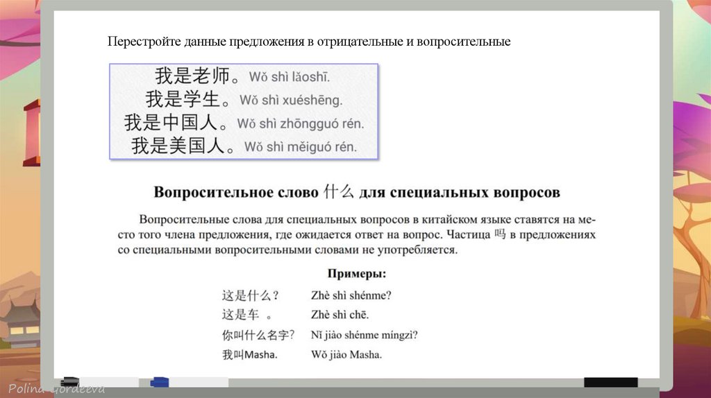 Перестройте данные предложения в отрицательные и вопросительныеPolina Gordeeva