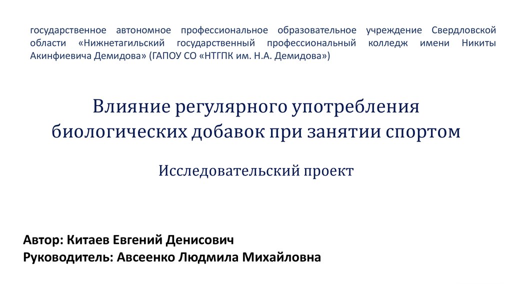 государственное автономное профессиональное образовательное учреждение Свердловскойобласти «Нижнетагильский государственный профессиональный колледж имени Никиты