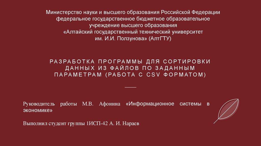 Министерство науки и высшего образования Российской Федерациифедеральное государственное бюджетное образовательное