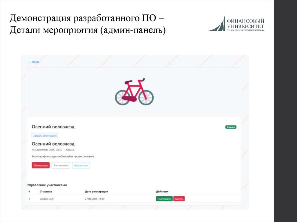 Демонстрация разработанного ПО –Детали мероприятия (админ-панель)