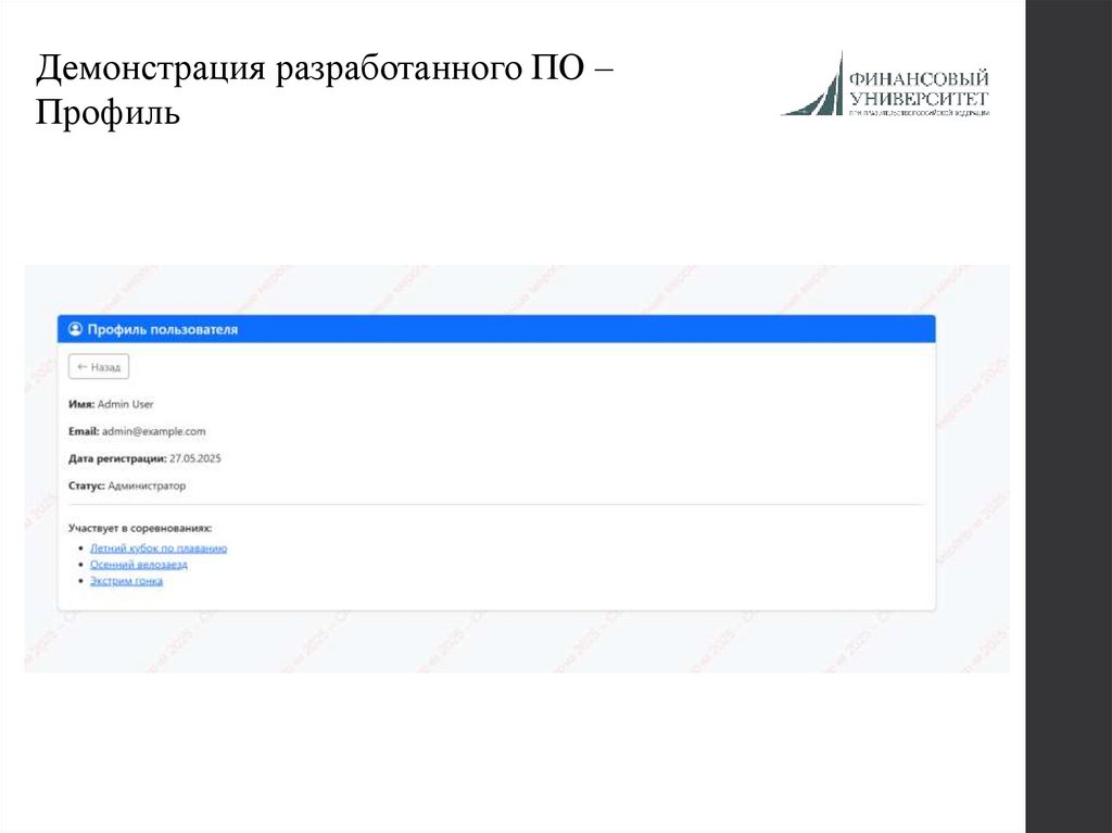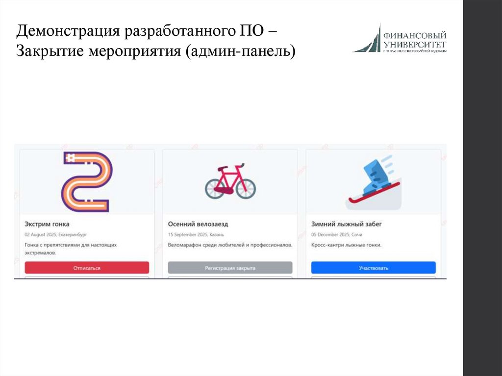 Демонстрация разработанного ПО –Закрытие мероприятия (админ-панель)