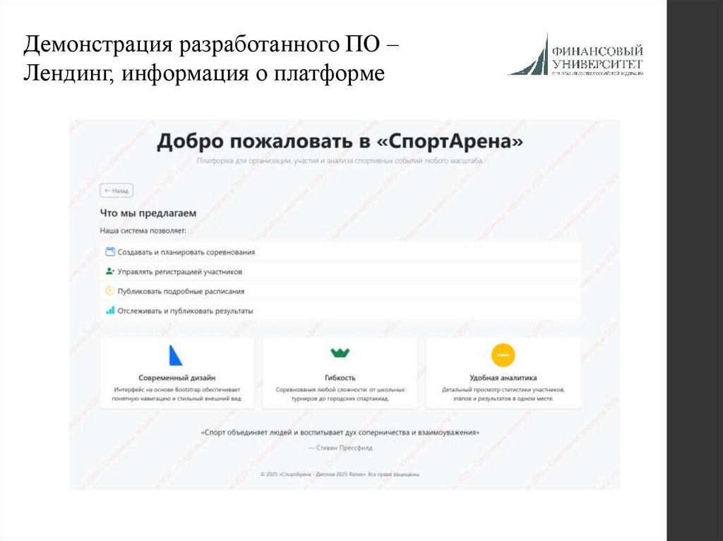Демонстрация разработанного ПО –Лендинг, информация о платформе