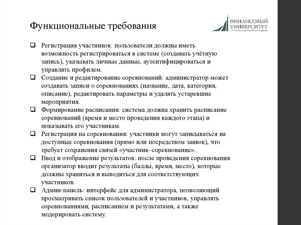 Функциональные требованияРегистрация участников: пользователи должны иметь