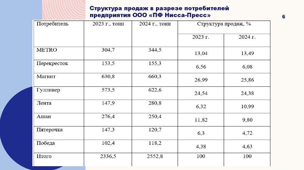 Структура продаж в разрезе потребителейпредприятия ООО «ПФ Нисса-Пресс»