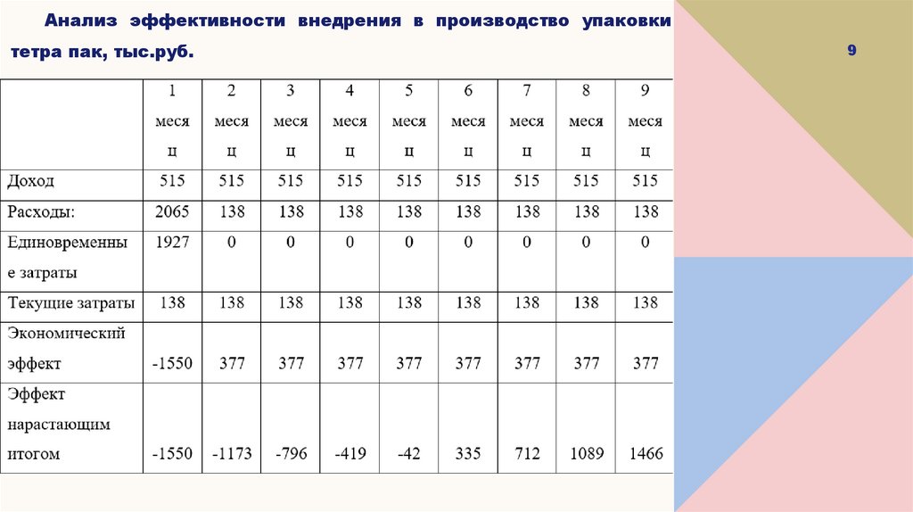 Анализ эффективности внедрения в производство упаковкитетра пак, тыс.руб.