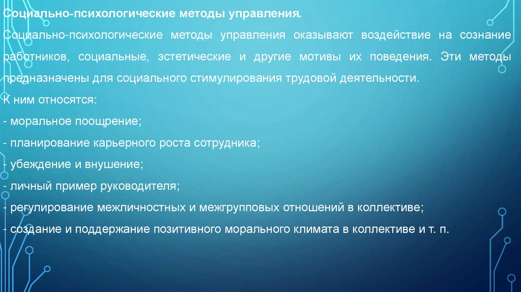 Социально-психологические методы управления.Социально-психологические методы управления оказывают воздействие на сознание