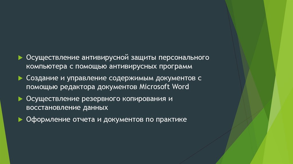 Осуществление антивирусной защиты персональногокомпьютера с помощью антивирусных программ
