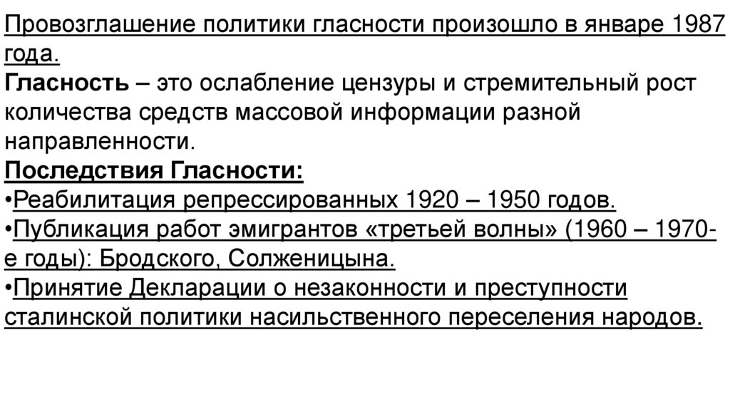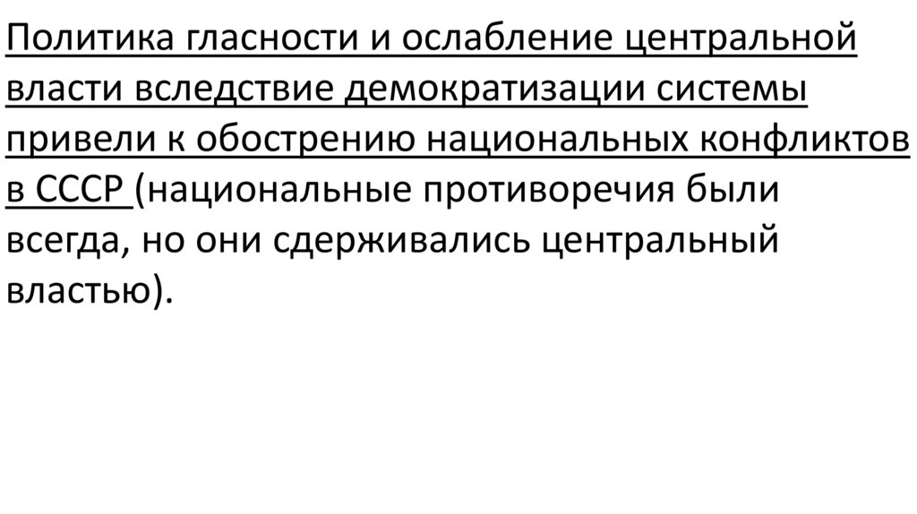 Политика гласности и ослабление центральнойвласти вследствие демократизации системы