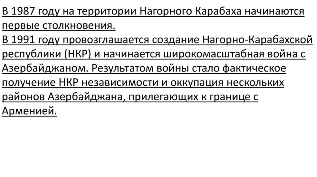 В 1987 году на территории Нагорного Карабаха начинаютсяпервые столкновения.