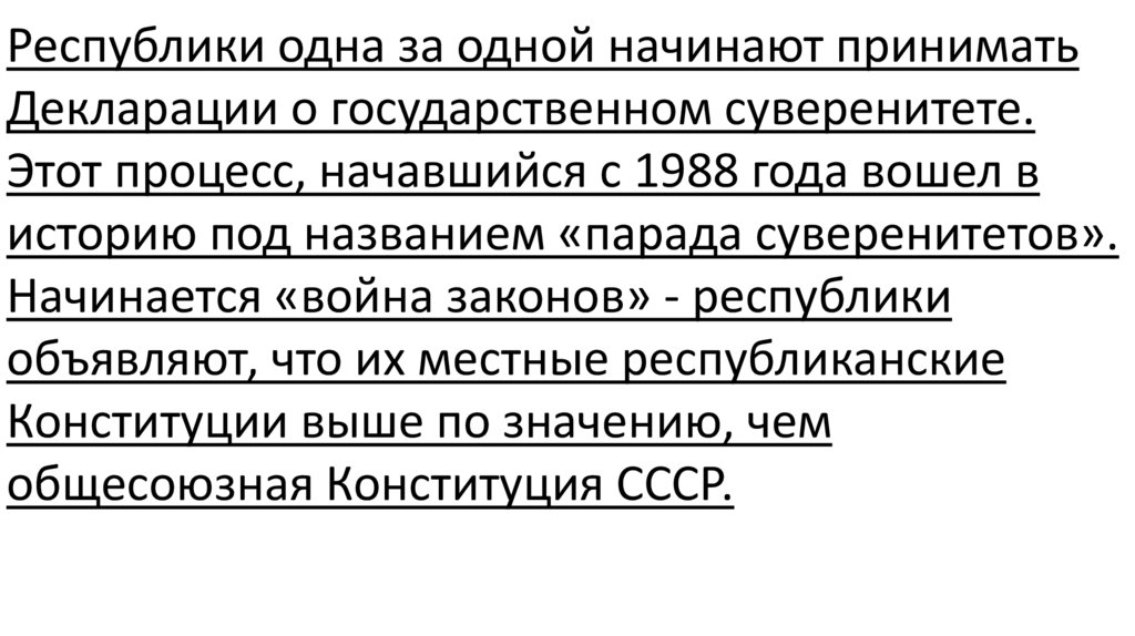 Республики одна за одной начинают приниматьДекларации о государственном суверенитете.