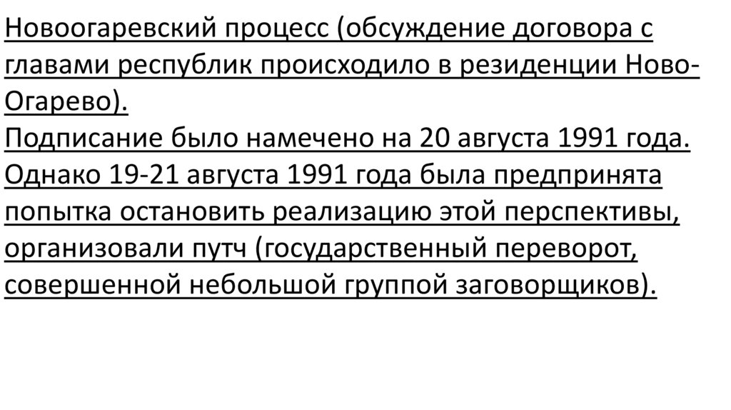 Новоогаревский процесс (обсуждение договора сглавами республик происходило в резиденции НовоОгарево).