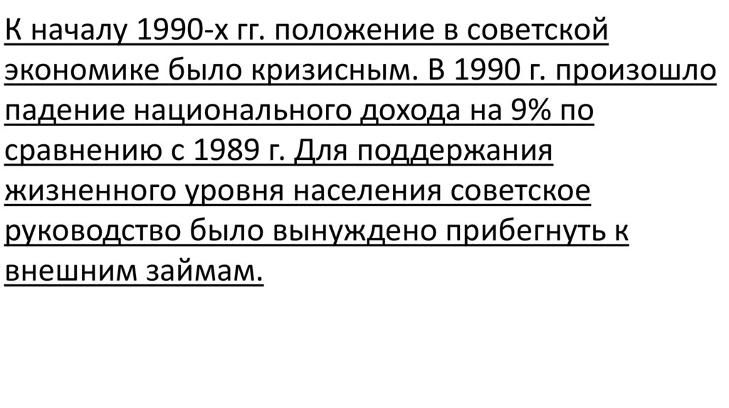К началу 1990-х гг. положение в советскойэкономике было кризисным. В 1990 г. произошло