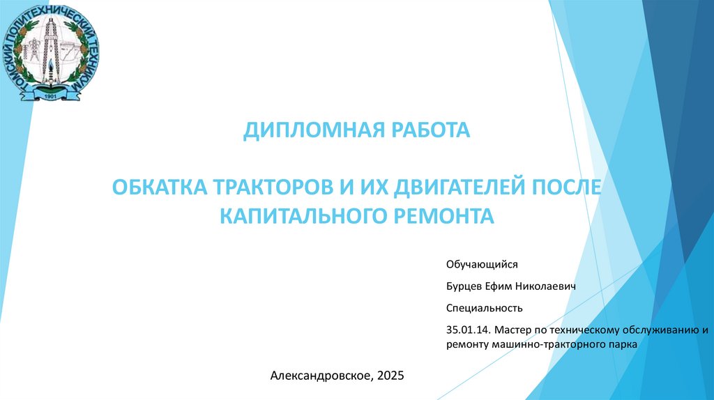 1. ДИПЛОМНАЯ РАБОТА ОБКАТКА ТРАКТОРОВ И ИХ ДВИГАТЕЛЕЙ ПОСЛЕ КАПИТАЛЬНОГО РЕМОНТА
