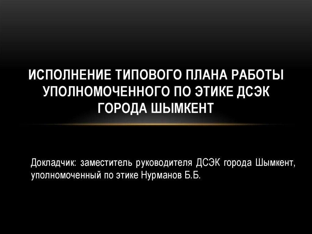 Исполнение типового плана работы уполномоченного по этике ДСЭК города Шымкент