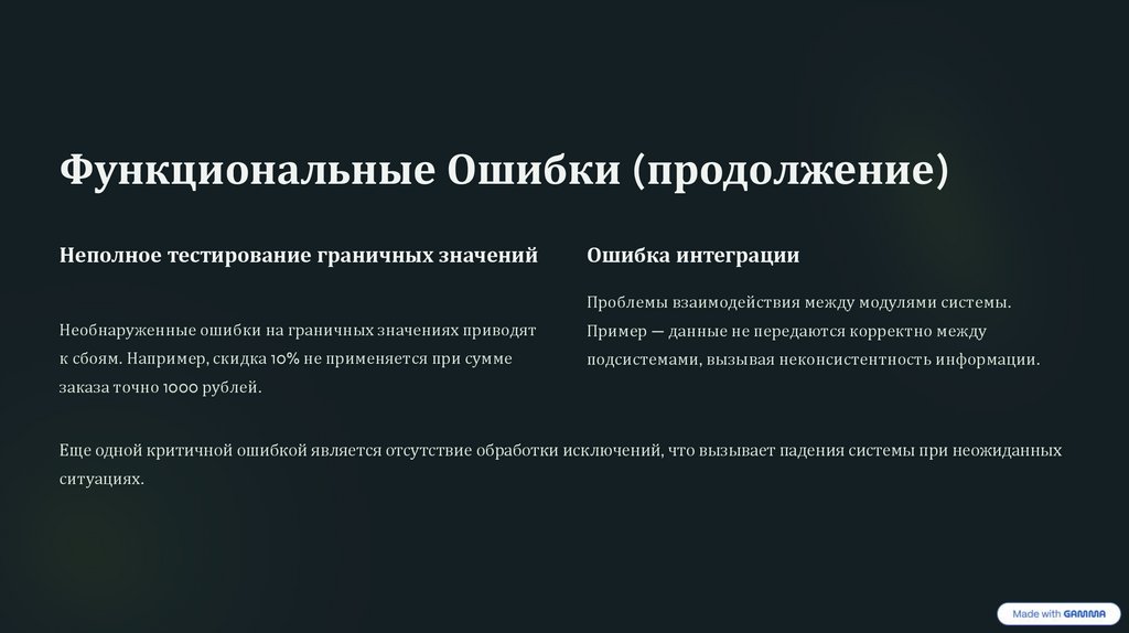 Функциональные Ошибки (продолжение)Неполное тестирование граничных значений