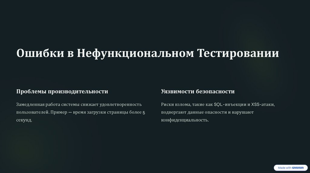 Ошибки в Нефункциональном ТестированииПроблемы производительности