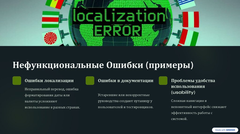Нефункциональные Ошибки (примеры)Ошибки локализации