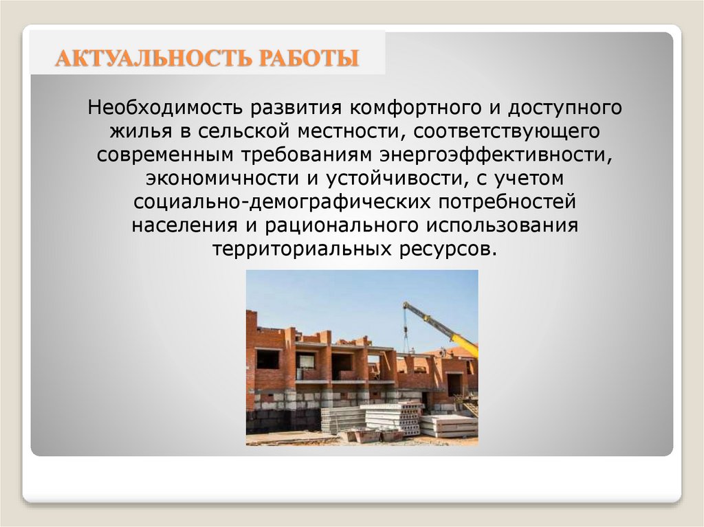 АКТУАЛЬНОСТЬ РАБОТЫНеобходимость развития комфортного и доступного