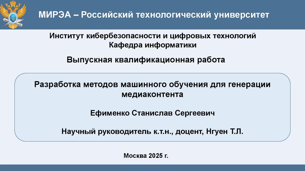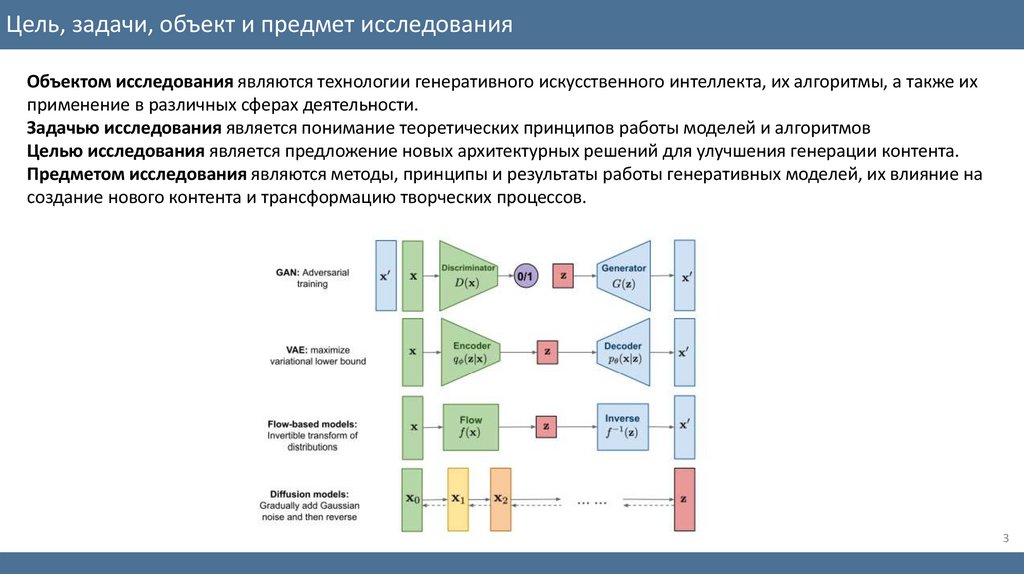 Цель, задачи, объект и предмет исследованияОбъектом исследования являются технологии генеративного искусственного интеллекта, их алгоритмы, а также их
