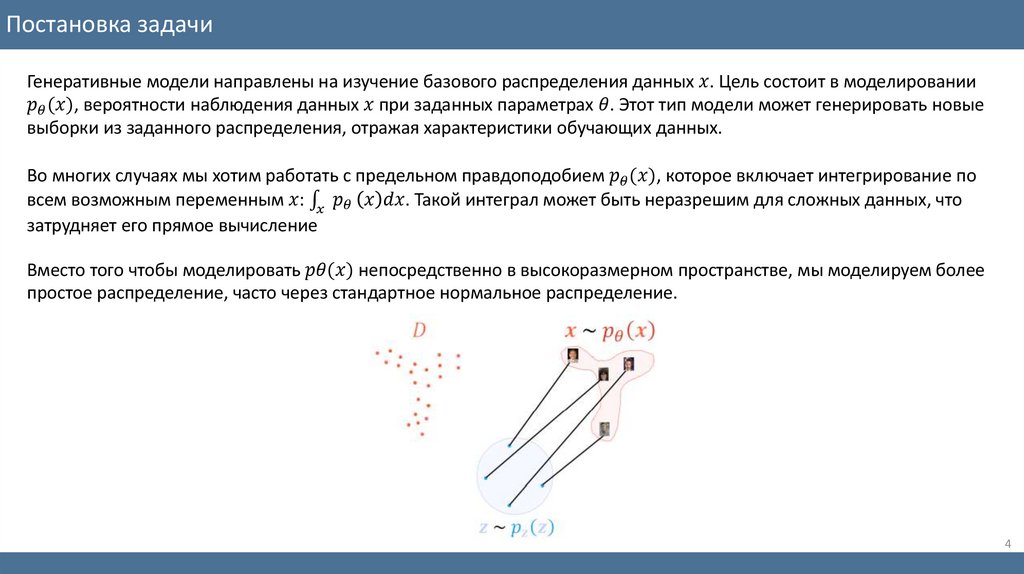 Постановка задачиГенеративные модели направлены на изучение базового распределения данных